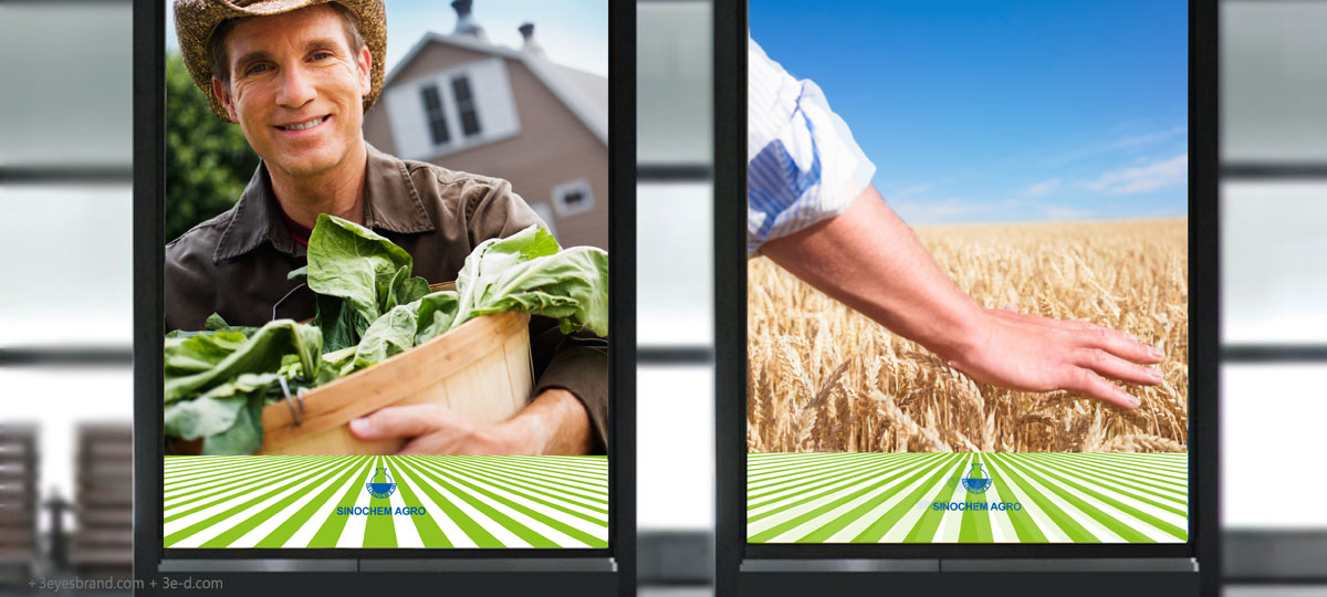 輔助圖形以廣闊、深遠的現代化農田的形象為聯(lián)想。引發(fā)受眾對農作物的豐收充滿(mǎn)期待,畫(huà)面簡(jiǎn)潔而壯麗,大氣而生動(dòng)。塑造了一個(gè)農業(yè)化工領(lǐng)跑者的大氣形象,走在時(shí)代的前沿,全球的前沿。寓意著(zhù)中化農化領(lǐng)先與他人的卓越科技,以及美好的前景。